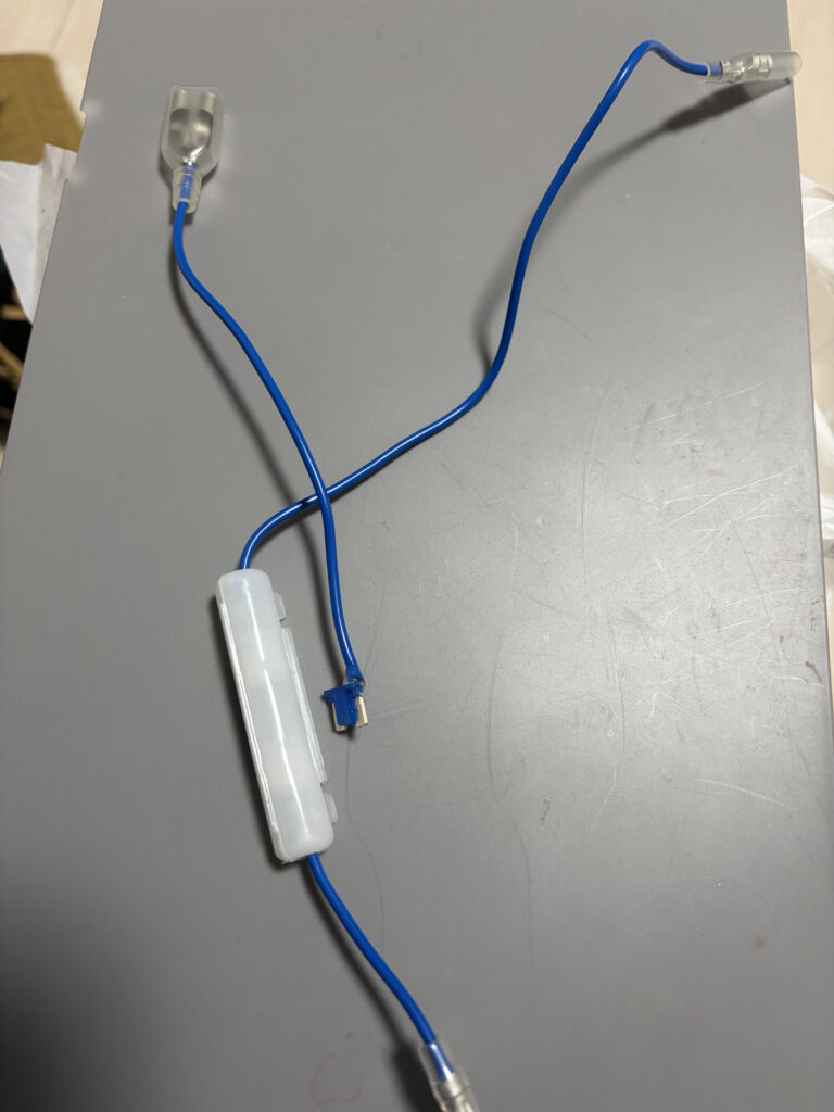 通電が確認できた方に配線がはんだ付けされている向きで常時電源とACC電源を取り出すためのヒューズをそれぞれさします。