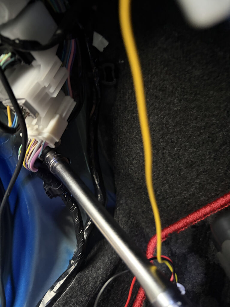 ヒューズボックスは助手席の足元あたりにあったのでグローブボックスを外してヒューズボックスからACC電源と常時電源を取り出し。