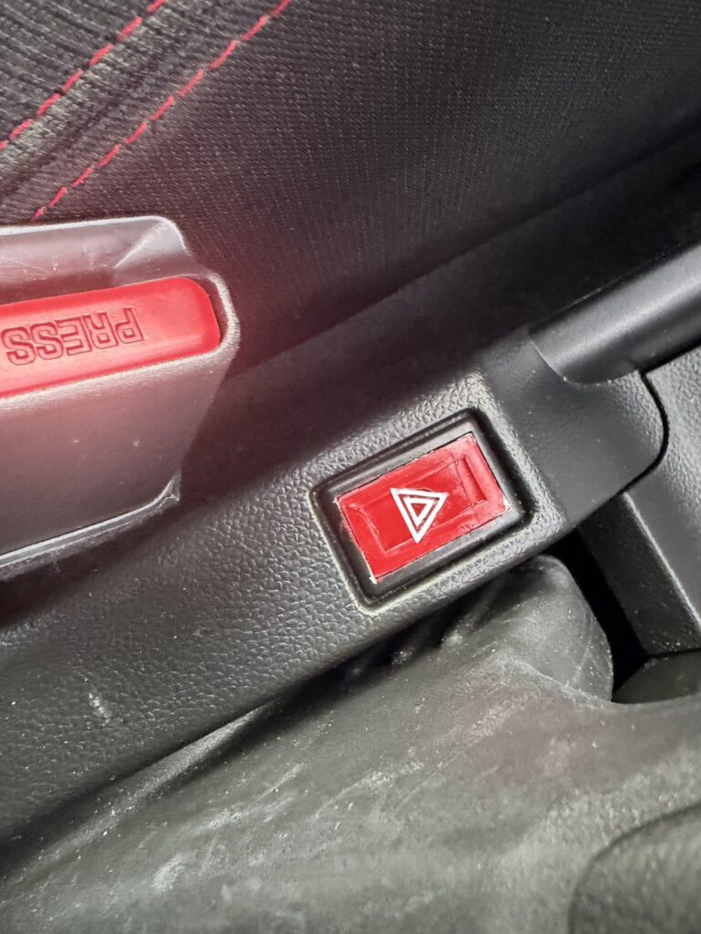 ハザードスイッチはシートヒーター横の空スイッチを利用して取り付けました。(作業に集中しすぎてまた写真撮り忘れた…)