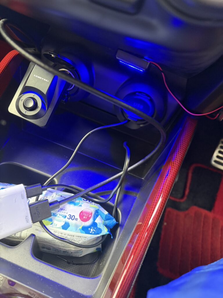 そのあとはセンターコンソールにLEDライトを取り付け。