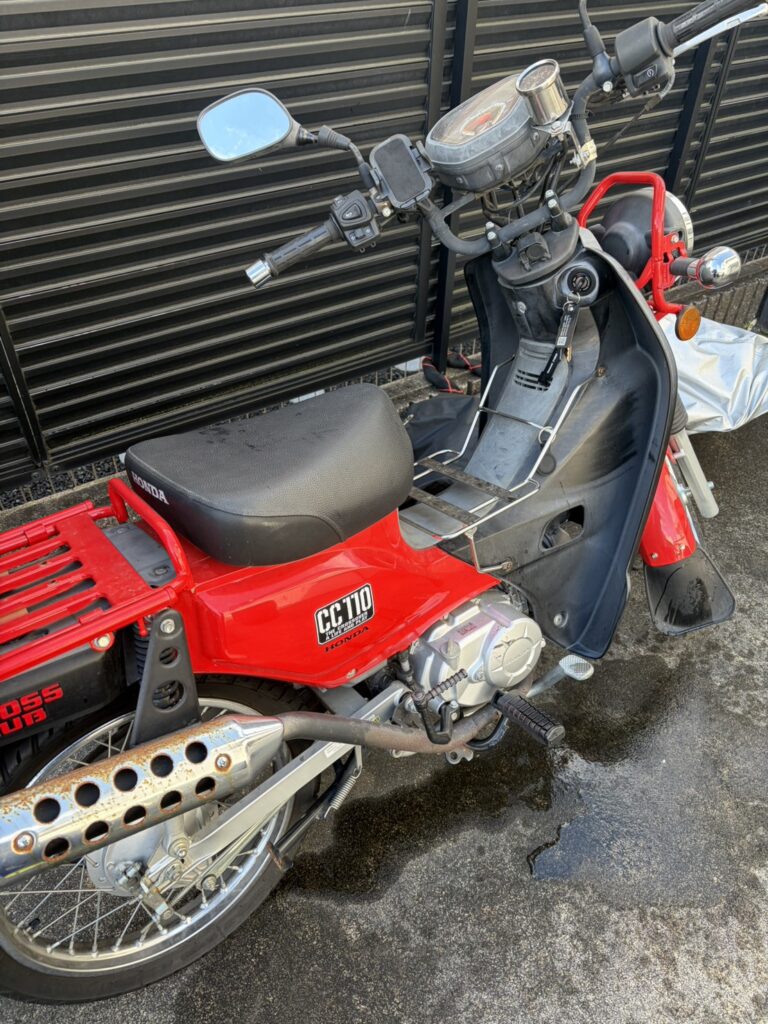 普段、近所のグラウンドにソフトボールしに行く時くらいしかのらないのでセルでエンジンがかからずキックで始動。